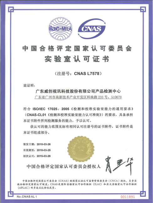 2015年,廣東威創(chuàng)視訊科技股份有限公司(以下簡(jiǎn)稱“威創(chuàng)”)產(chǎn)品檢測(cè)中心獲得中國(guó)合格評(píng)定國(guó)家認(rèn)可委員會(huì)(CNAS)實(shí)驗(yàn)室認(rèn)可證書(shū)。 CNAS(中國(guó)合格評(píng)定國(guó)家認(rèn)可委員會(huì))是由國(guó)家認(rèn)證認(rèn)可監(jiān)督管理委員會(huì)批準(zhǔn)設(shè)立并授權(quán)的國(guó)家認(rèn)可機(jī)構(gòu),統(tǒng)一負(fù)責(zé)對(duì)認(rèn)證機(jī)構(gòu)、實(shí)驗(yàn)…