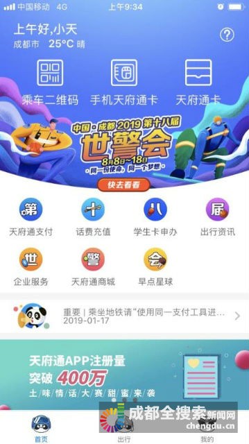 為迎接8月8日舉行的“中國?成都2019第十八屆世界警察和消防員運動會”,成都天府通推出了“世警會”專屬定制紀念卡,天府通APP首頁也更換了全新的“世警會紀念版”版面。