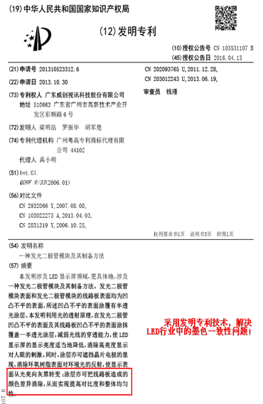 威創(chuàng)專利技術(shù),解決LED行業(yè)墨色一致性問題