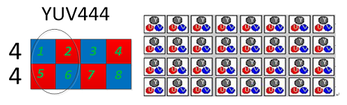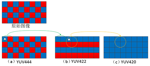 在信號(hào)傳輸帶寬的節(jié)省上,YUV420效率優(yōu)于YUV444,YUV422優(yōu)于YUV444。因此在普通的視頻編解碼算法上,為節(jié)省傳輸帶寬開銷,普遍采用YUV420或者YUV422的采樣格式。
