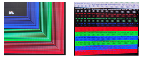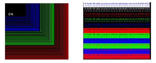圖5(a):我們可以看到Y(jié)UV444的色度信號(hào)的分辨率和亮度信號(hào)的分辨率無損失,我們獲得了與原始圖案一致的還原畫面圖案。