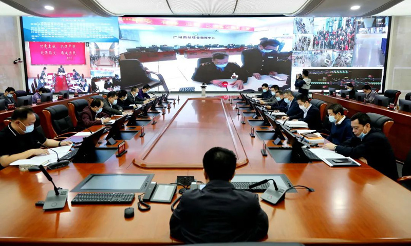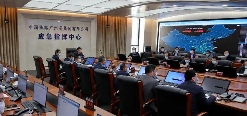 “立即發(fā)布調(diào)度命令,啟動(dòng)集團(tuán)公司Ⅳ級(jí)應(yīng)急響應(yīng)?!敝笓]人員發(fā)出指示,春運(yùn)廣州南站旅客大面積滯留路地聯(lián)動(dòng)應(yīng)急演練啟動(dòng),在應(yīng)急指揮中心的主屏上,藍(lán)色的調(diào)度命令呈現(xiàn)在正中央,各個(gè)應(yīng)急小組的響應(yīng)情況迅速反饋到屏幕上,行車應(yīng)急組、客運(yùn)應(yīng)急組、善后應(yīng)急組等紛紛向指揮中心報(bào)告……