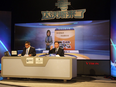 VTRON此次帶來(lái)的是運(yùn)用LED光源的演播室解決方案。該解決方案采用綠色環(huán)保型的LED光源替代UHP光源應(yīng)用于DLP拼接顯示系統(tǒng),具有寬色域、長(zhǎng)壽命、節(jié)能、環(huán)保等特點(diǎn),十分切合此次大會(huì)的主題。同時(shí),它的LED光源機(jī)芯具有超寬色溫調(diào)整能力,能夠充分滿足活動(dòng)現(xiàn)場(chǎng)直播室的低色溫的需求,完美匹配現(xiàn)場(chǎng)的燈光。